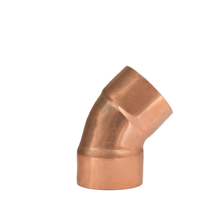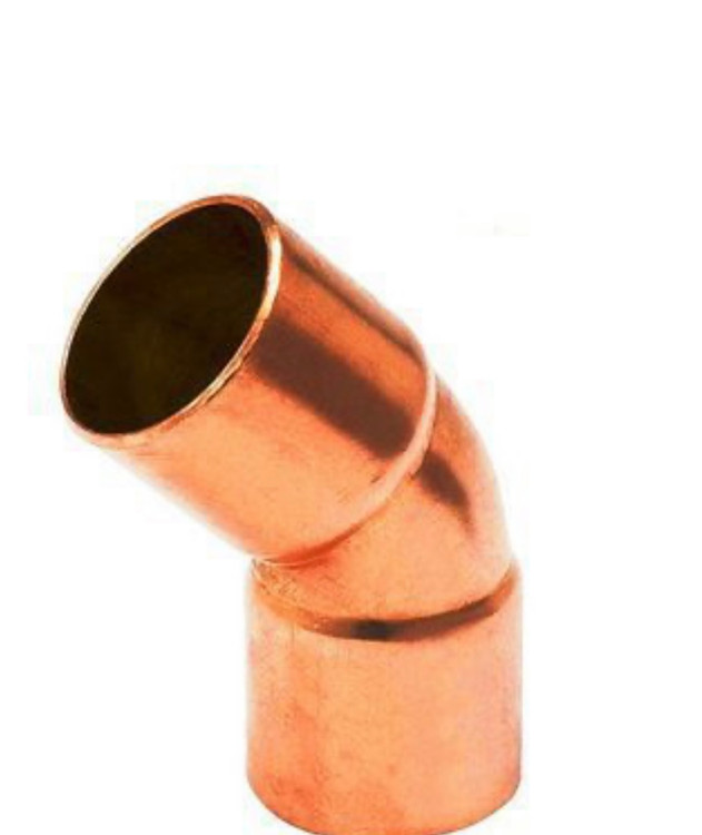 از “زانو 45 درجه مسی” برای استفاده در لوله کشیهای مربوط به برخی از سیستمهای گرمایشی و همچنین تجهیزات سرد کننده و تهویه مطبوع مثل چیلرها، کولرهای گازی، سیستمهای تبرید، برجهای خنک کننده و … استفاده میگردد. از زانویی مسی 45 درجه برای تغییر زاویه لولهها استفاده میشود.